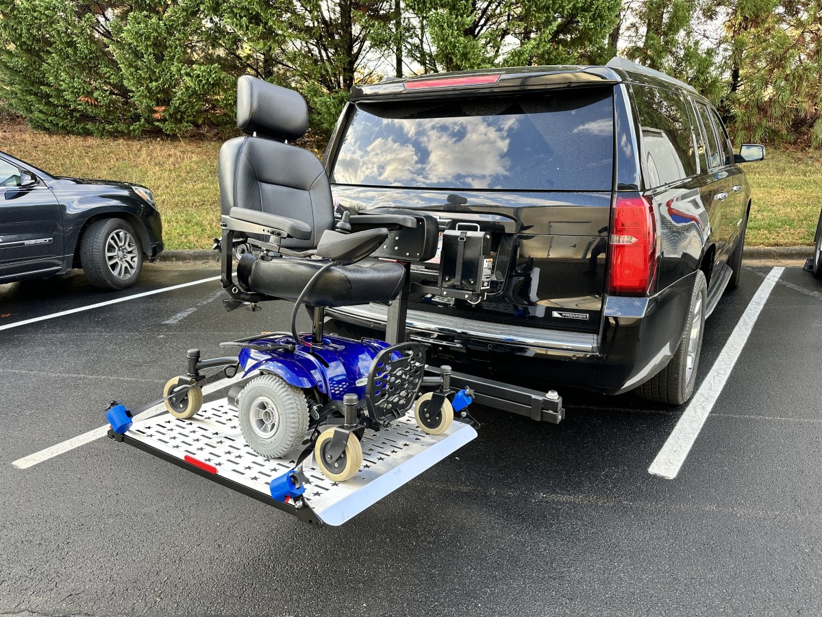 That is why our client preferred a battery-powered Harmar AL100 lift so the lift could be easily moved to different vehicles when needed. This is a great option for the newer electric-powered vehicles.