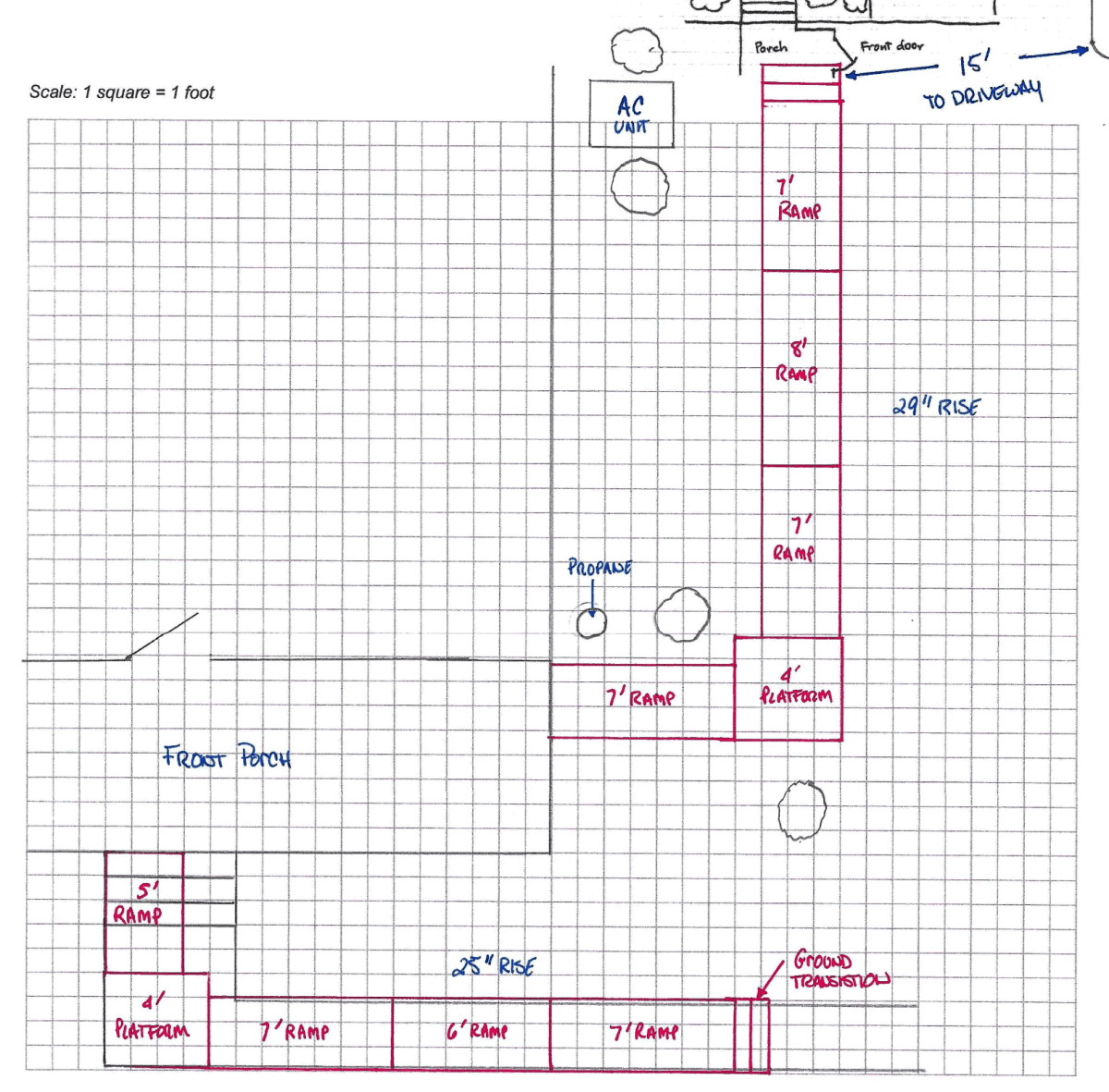 Our client simply wanted to go to and from her home by herself. The steep back stairs had become unbearable. Having this front entry design provides safe and easy access.