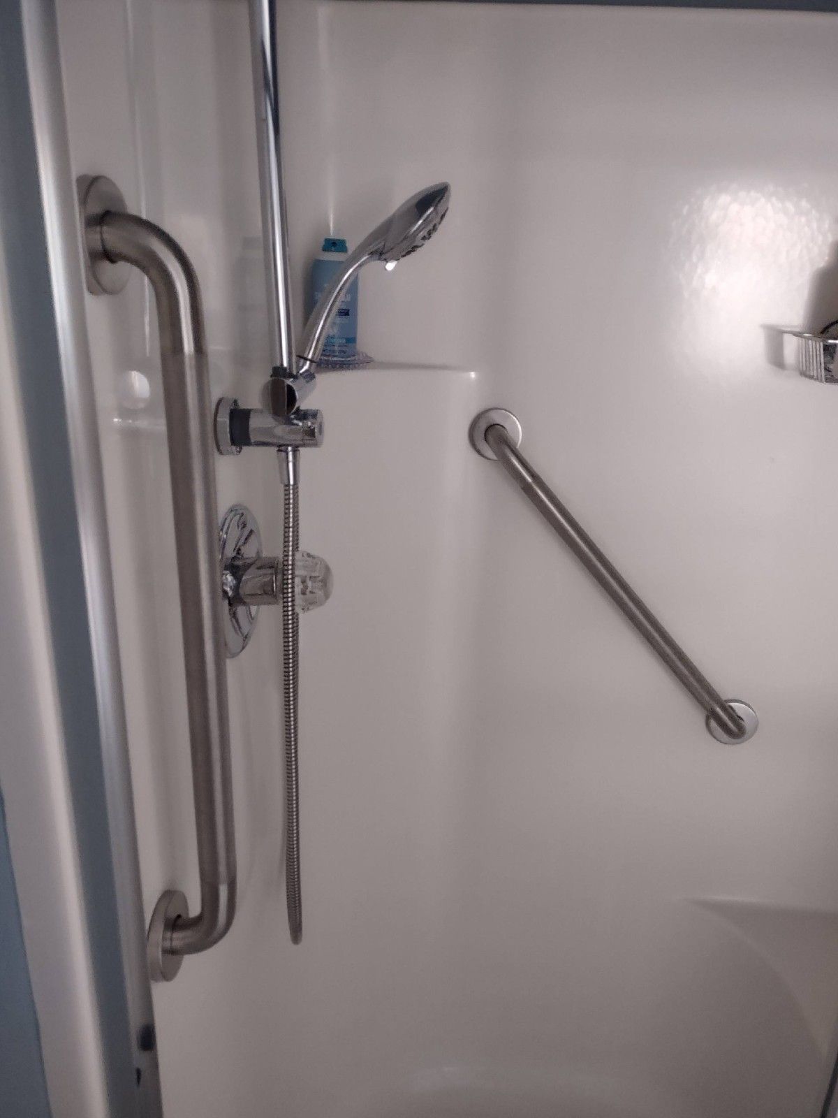 This project involved a same-day assessment and installation of two grab bars inside a fiberglass shower insert. The customer had recently undergone surgery and was struggling to shower safely due to pain and limited mobility when standing or rising from her shower bench.